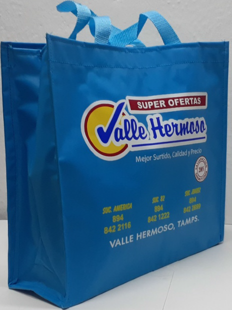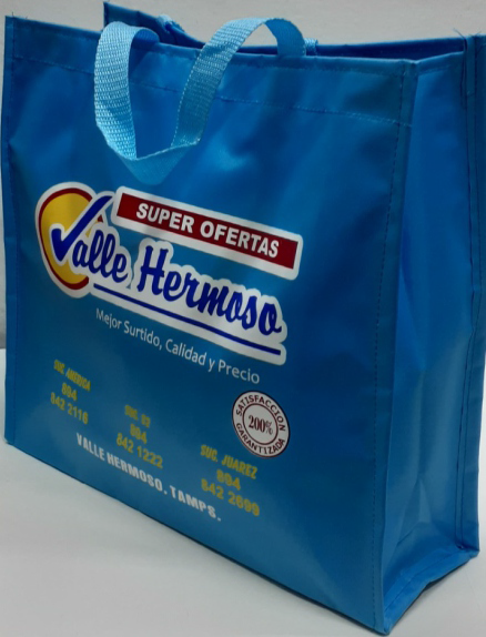 Bolsa de tela plastificada para uso intenso con fuelle. Cuenta con asa de listón industrial, resistente y flexible.