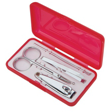 Set de 4 piezas de manicure. Incluye cortaúñas, pinzas, tijeras y cortacutícula.