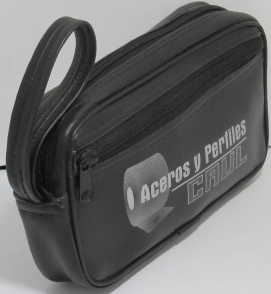 Maletín multiusos a base de vinipiel. Con cierre reforzado en parte superior. Cuenta con bolsa lateral. Impreso en ambos lados con su publicidad..